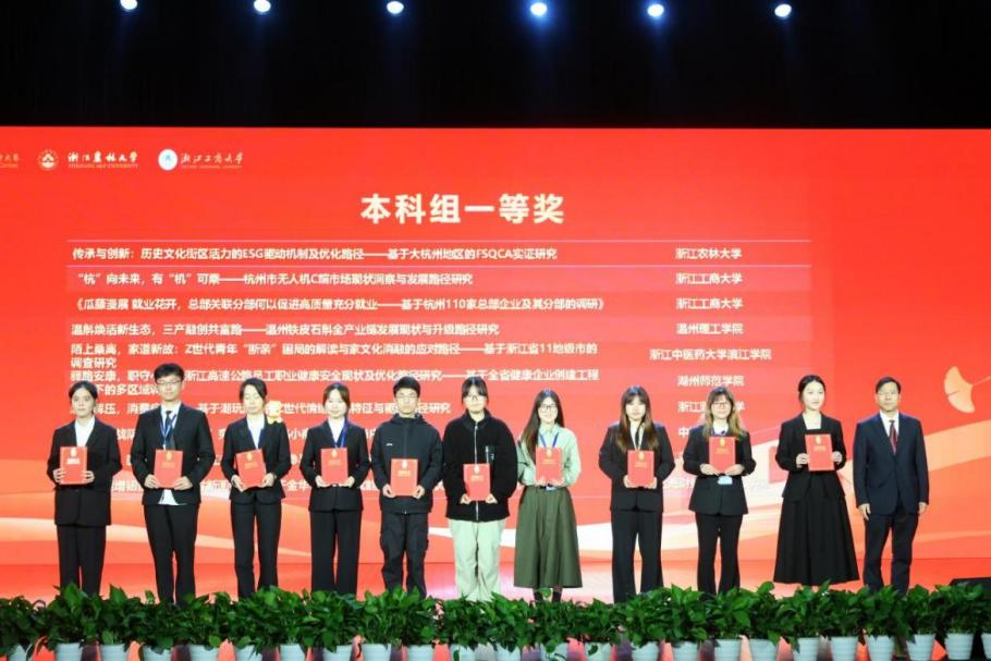 浙江省“民生民意杯”第十四届大学生统计调查方案设计大赛紧扣时代脉搏,以“深入实际、调研社会”为主题主线,旨在引导广大青年学子将专业的统计分析方法与鲜活的经济社会发展、民生需求等紧密联系起来。本次大赛参赛作品聚焦于乡村振兴、数智共富、低空经济等国家、浙江发展战略与产业需求,从多个维度呈现了统计调查分析方法的应用领域与广阔前景,有效增强了青年大学生深入一线调研的责任意识与创新能力,成为“以赛促学、以赛促教、以赛促育、以赛促研”的生动实践。