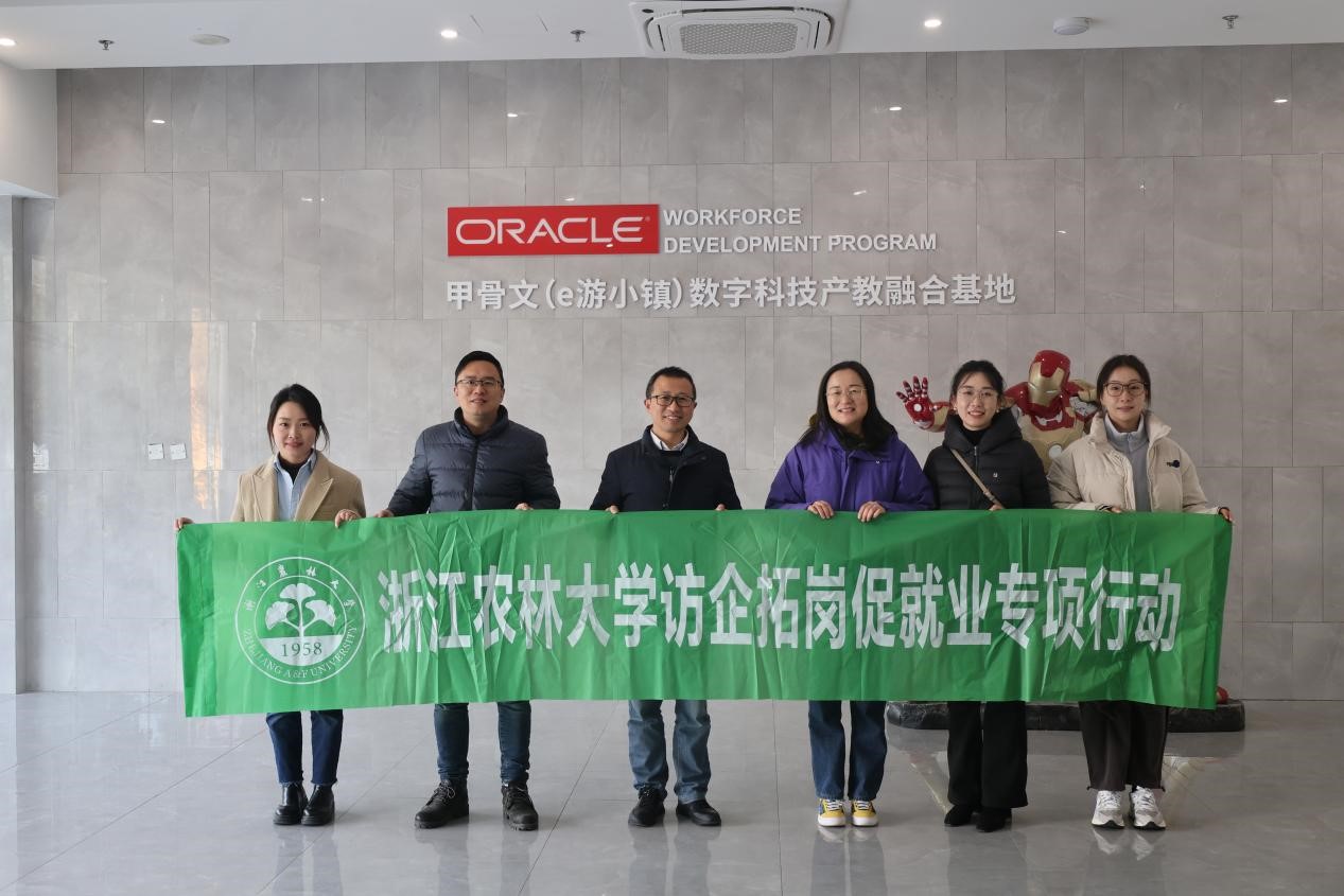 为贯彻党中央、国务院关于高校毕业生就业工作的决策部署,落实教育部和省教育厅“访企拓岗促就业”专项活动,深入推进学院就业工作,深化学生培养。12月20日,伟德国际victor1946党委副书记黄萍、副院长张洪涛、学生办主任袁晓燕、辅导员陈瑞珂、楼绘琪、张静静等一行6人,赴甲骨文(e游小镇)数字科技产教融合基地调研交流,开展访企拓岗促就业专项行动。