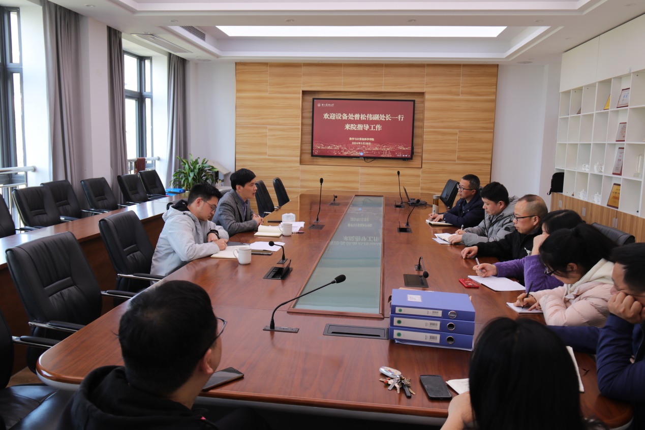 3月20日下午,实验室与设备管理处副处长曾松伟、实验室建设与安全管理办公室相关人员来院调研并进行座谈交流。学院分管实验室工作副院长张洪涛、实验教学中心副主任及实验技术人员参与了调研会。