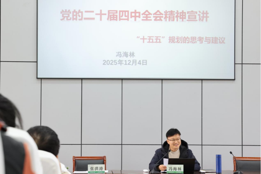 冯海林同志结合在省委党校三个月的系统学习成果,以“党的二十届四中全会精神宣讲—十五五规划的思考和建议”为题,为全体教职工讲授了一堂深刻且务实的党课。他紧扣“十五五”规划制定的时代背景与核心要义,深入解读了中国式现代化的战略部署,清晰阐释了2035年基本实现社会主义现代化的目标要求,为教职工准确把握全会精神与国家发展方向提供了有力指引。立足国际国内人工智能领域的发展新形势,结合学院学科特色与发展实际,冯海林指出,中长期规划是我国发展的重要制度优势,学院将牢牢紧跟国家战略布局与学校发展规划,引导教职工把个人学术追求深度融入学科建设与社会需求,鼓励大家在教学创新、科研攻关中切实践行党的二十届四中全会精神,以实际行动助力学院高质量发展。此外,冯海林同志还总结了学院今年的工作成效:在人才引育、课程体系建设、科研项目申报、高水平论文发表等方面成果丰硕,专业认证推进有序,高水平会议承办工作圆满完成。他希望新老教师加强交流协作,尤其要借助学院新引进国家级人才的国际化视野与资源优势,不断拓宽学术研究视野,搭建更广阔的合作渠道,共同为学院学科发展与人才培养注入新动能。