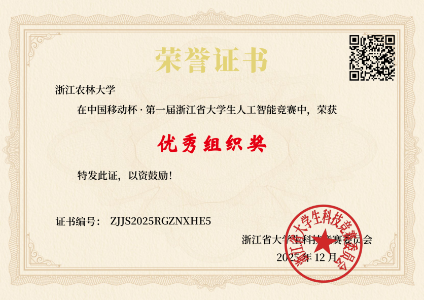 自2025年6月该竞赛启动以来,伟德国际victor1946作为我院校内赛事牵头单位,积极开展宣传动员、选题组队与材料打磨等备赛工作。本次比赛设算法挑战、场景应用及创意三大赛道,我院参赛作品聚焦“解决产业实际痛点”,有机结合生产生活具体场景与算法设计等凝练创新锚点,深度契合“人工智能+”行动计划,彰显了我院新工科建设成效与“数智+农林”的育人特色,浓厚了数智类学科专业与师生团队以赛促育、以赛促创的学习共同体氛围。